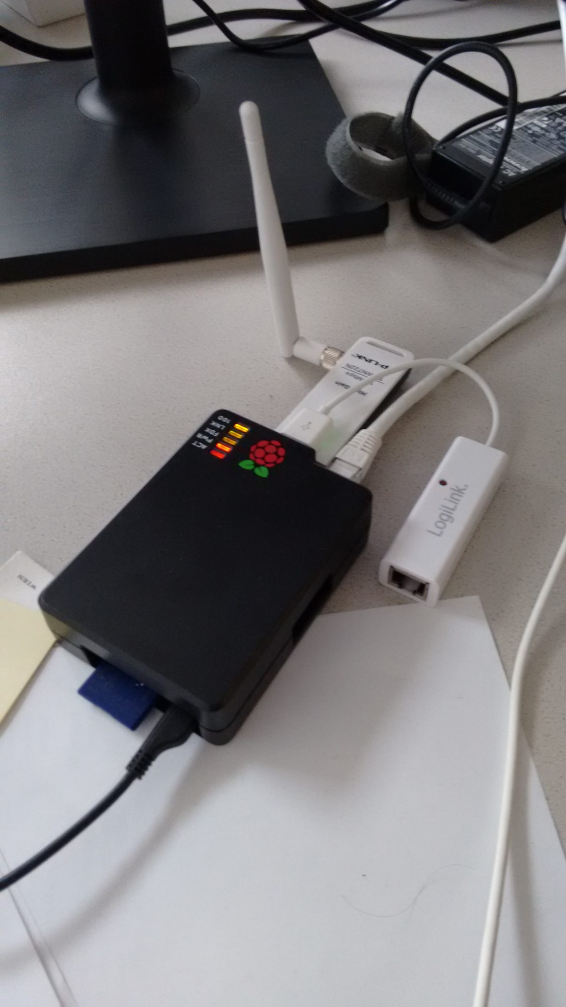 The first challenge we had to overcome, consisted in selecting a suitable WiFi USB dongle for the upribox WiFi Access Point setup. The wiki of the pirate box project turned out to be the best source for Rasberry Pi compatible USB WiFi dongles. After unsuccessfully testing a number of different devices we finally decided to use TL-WN722N dongles from TP-Link. This Wifi dongle works out of the box with Linux and is compatibly with hostapd.